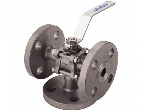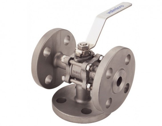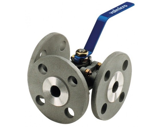 VÁLVULA DE ESFERA DIVERSORA COM FLANGE DIN PN 40 Fornecida em aço carbono (ASTM A216 Gr. WCB) e aço inox (ASTM A351 Gr. CF8 e CF8M).